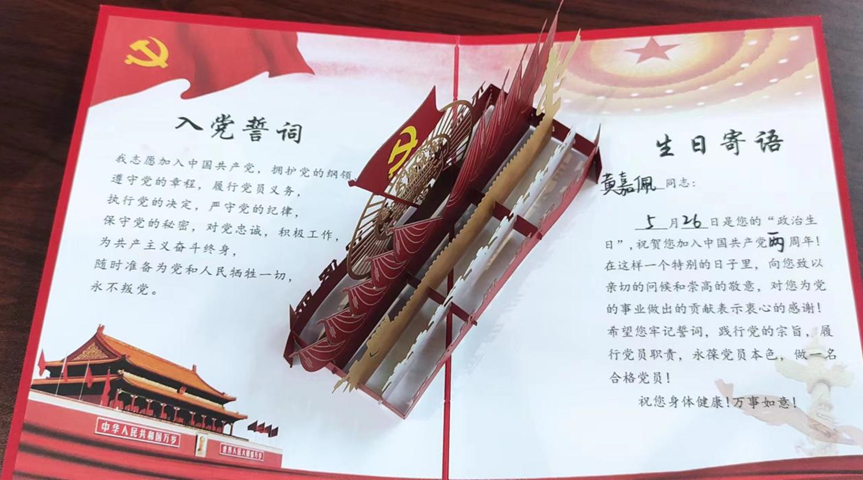 最后支部為本月入黨的黨員舉行了“黨員政治生日月”活動(dòng),在五月份過政治生日的有鄧洋洋、梁觀浩、陳宏亮、李晗杰、黃志權(quán)、程繼霆、黃嘉佩。大家為這幾位黨員送出賀卡,他們也表達(dá)了對(duì)黨組織的感謝。