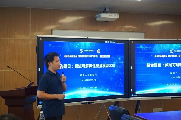 2023 年6月21日,CSIG圖像圖形中國行來到深圳大學(xué),本次研討會旨在定位于人工智能安全威脅與知識產(chǎn)權(quán)保護等前沿技術(shù),展示該領(lǐng)域最新的研究成果,并討論研究中面臨的難題與挑戰(zhàn)。活動主辦單位包括中國圖象圖形學(xué)學(xué)會(CSIG)、廣東省圖象圖形學(xué)會,承擔(dān)單位包括CSIG 數(shù)字媒體取證與安全專委會、深圳大學(xué)電子與信息工程學(xué)院(廣東省智能信息處理重點實驗室)、中山大學(xué)網(wǎng)絡(luò)空間安全學(xué)院。本次會議得到了廣泛關(guān)注,吸引了來自香港城市大學(xué)、重慶郵電大學(xué)、海南大學(xué)、灣區(qū)大學(xué)、中山大學(xué)、深圳大學(xué)等高校師生前來參會。 會議開幕式由深圳大學(xué)李斌教授主持,深圳大學(xué)電子與信息工程學(xué)院執(zhí)行院長黃磊特聘教授致開幕詞。李斌教授、陳昌盛副教授、楊文元助理教授分別為來訪專家主持學(xué)術(shù)報告。