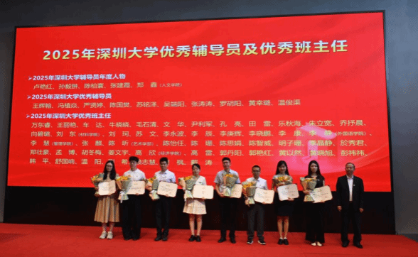 我院王可老師被評為“2025年深圳大學管理服務先進工作者”,陳柏寰老師被評為“2025年深圳大學輔導員年度人物”,溫陽、李曉鵬、舒國響等3位教師被評為“2025年深圳大學優(yōu)秀班主任”。