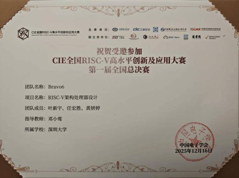 此次獲獎不僅是我院學生人才培養(yǎng)的重要實踐,也是學院近年來持續(xù)深化產(chǎn)教融合、鼓勵學生參與高水平學科競賽的重要成果。未來,學院將繼續(xù)依托相關(guān)科研平臺,加大對RISC-V等關(guān)鍵核心技術(shù)領(lǐng)域的投入,鼓勵更多學子投身于中國“芯”的創(chuàng)新實踐中,為國家集成電路產(chǎn)業(yè)發(fā)展培養(yǎng)更多高素質(zhì)創(chuàng)新型人才。