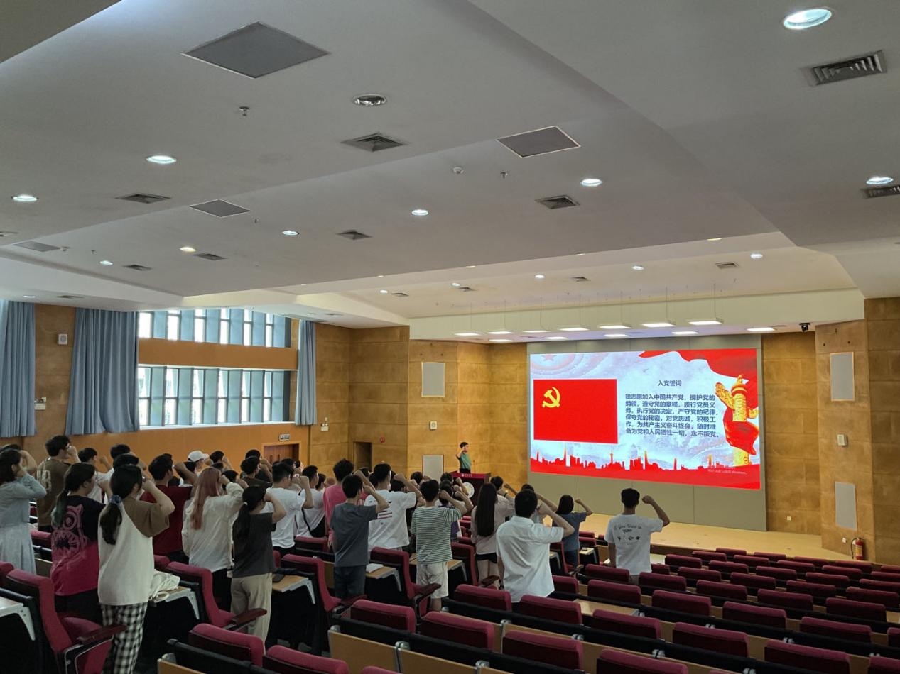 黨課結(jié)束后,舉行重溫入黨誓詞活動(dòng)。“我志愿加入中國(guó)共產(chǎn)黨,擁護(hù)黨的綱領(lǐng),遵守黨的章程……”,由優(yōu)秀畢業(yè)生黨員龐宇東領(lǐng)誓,全體黨員面對(duì)鮮紅的黨旗,舉起右拳,莊嚴(yán)宣誓。每一位黨員字字鏗鏘、心潮澎湃,回顧了自己在入黨宣誓時(shí)的莊嚴(yán)承諾和堅(jiān)定信念,心靈再一次受到洗禮,思想又一次得到升華。
