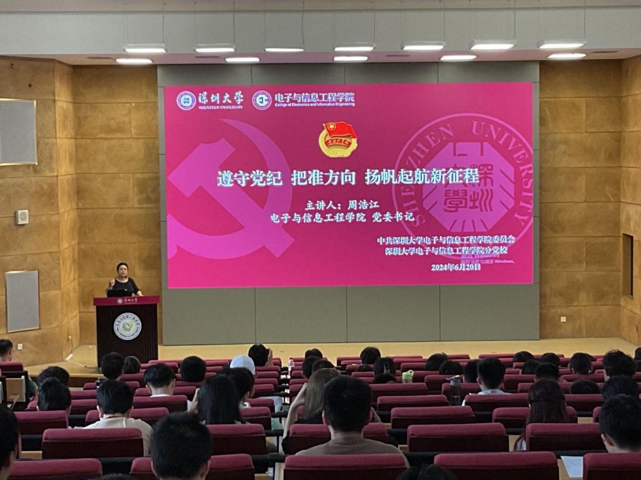 為深入學(xué)習(xí)貫徹習(xí)近平總書記關(guān)于黨紀(jì)學(xué)習(xí)教育的重要論述,做好畢業(yè)生黨員黨紀(jì)黨規(guī)教育工作,深圳大學(xué)電子與信息工程學(xué)院黨委和學(xué)院分黨校于6月20日下午舉行畢業(yè)生黨員座談會(huì)。學(xué)院黨委書記周浩江、黨建組織員劉旭晨老師和畢業(yè)生黨員一百二十余人參加了本次會(huì)議。