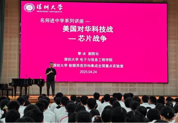 2025年4月27日下午,我院黎冰副教授走進佛山市鄭裕彤中學,為學生帶來了主題為《美國對華科技戰(zhàn)—芯片戰(zhàn)爭》的精彩演講。