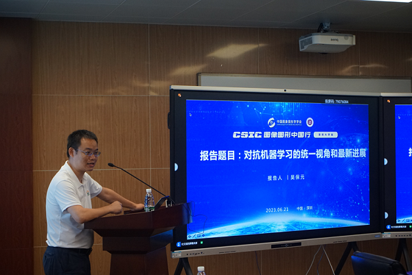2023 年6月21日,CSIG圖像圖形中國行來到深圳大學(xué),本次研討會旨在定位于人工智能安全威脅與知識產(chǎn)權(quán)保護(hù)等前沿技術(shù),展示該領(lǐng)域最新的研究成果,并討論研究中面臨的難題與挑戰(zhàn)。活動主辦單位包括中國圖象圖形學(xué)學(xué)會(CSIG)、廣東省圖象圖形學(xué)會,承擔(dān)單位包括CSIG 數(shù)字媒體取證與安全專委會、深圳大學(xué)電子與信息工程學(xué)院(廣東省智能信息處理重點(diǎn)實(shí)驗(yàn)室)、中山大學(xué)網(wǎng)絡(luò)空間安全學(xué)院。本次會議得到了廣泛關(guān)注,吸引了來自香港城市大學(xué)、重慶郵電大學(xué)、海南大學(xué)、灣區(qū)大學(xué)、中山大學(xué)、深圳大學(xué)等高校師生前來參會。 會議開幕式由深圳大學(xué)李斌教授主持,深圳大學(xué)電子與信息工程學(xué)院執(zhí)行院長黃磊特聘教授致開幕詞。李斌教授、陳昌盛副教授、楊文元助理教授分別為來訪專家主持學(xué)術(shù)報(bào)告。