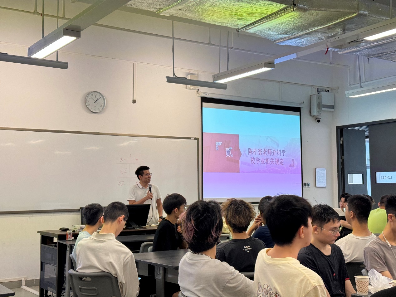 學(xué)工辦主任陳柏寰老師對學(xué)校學(xué)業(yè)相關(guān)規(guī)定進(jìn)行了詳盡的解讀,讓同學(xué)們更加清晰地了解學(xué)校的學(xué)業(yè)要求與標(biāo)準(zhǔn),從而為自己的學(xué)習(xí)設(shè)定明確的目標(biāo)和方向。陳老師也鼓勵同學(xué)們在面對生活中的困難和挑戰(zhàn)時(shí),保持積極樂觀的心態(tài),向老師、家長和朋友尋求幫助,共同尋找解決問題的辦法。學(xué)院始終將同學(xué)們的學(xué)業(yè)放在首要位置,陳老師還表示學(xué)院將為大家提供必要的資源和指導(dǎo),幫助同學(xué)們順利邁過每一個(gè)學(xué)習(xí)關(guān)卡。