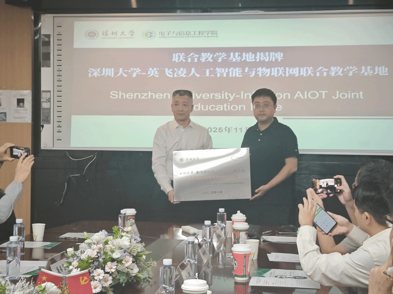 會議期間,深圳大學與英飛凌聯(lián)合舉辦了 “人工智能與物聯(lián)網(wǎng)聯(lián)合教學基地” 揭牌儀式,標志著雙方校企合作邁入新階段。隨后進入自由討論環(huán)節(jié),深圳大學的老師與英飛凌相關(guān)領(lǐng)導圍繞校企深度合作展開交流,重點探討了課程共建與產(chǎn)學研一體化的落地路徑。雙方聚焦創(chuàng)新短課開發(fā),提出將企業(yè)實際案例細化融入教學,并進一步探討了從短課學習延伸至畢業(yè)設(shè)計選題的合作可能性,為校企協(xié)同育人搭建更緊密的橋梁。