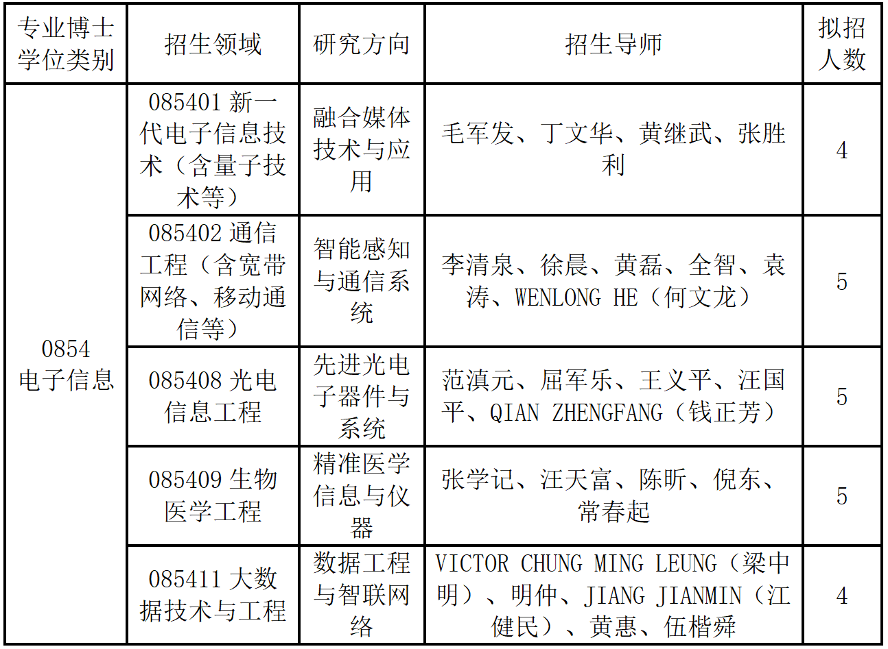 深圳大學電子信息專業(yè)學位博士授權(quán)點是深圳大學首批工程類博士學位授權(quán)點之一,下設新一代電子信息技術(shù)、通信工程、光電信息工程、生物醫(yī)學工程、大數(shù)據(jù)技術(shù)與工程五個領(lǐng)域。