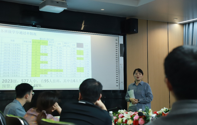 隨后輔導(dǎo)員王鑠瀚老師和龍菲老師介紹23級各班各班學(xué)分績點的通過率和掛科情況,分享對心理困難學(xué)生和家庭經(jīng)濟困難學(xué)生幫扶情況;班導(dǎo)師李曉鵬老師分享六項已完成的工作內(nèi)容和心得體會;寧肯老師分享新任班導(dǎo)師的心得與收獲。最后楊丹老師作總結(jié)發(fā)言,她倡導(dǎo)班主任和輔導(dǎo)員應(yīng)當(dāng)繼續(xù)強化學(xué)風(fēng)口建設(shè),加強聯(lián)動,與學(xué)工口精誠協(xié)作,合作共贏。