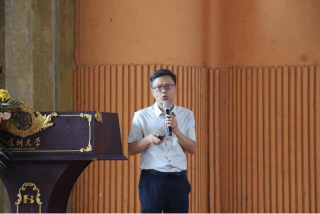 黃磊從“校情院史”“師資隊(duì)伍”“教學(xué)情況”等方面全方位、多角度地介紹了電信學(xué)院雄厚的師資力量與一流的教學(xué)、科研設(shè)施,寄語大家“奮力跑出深大加速度,全力創(chuàng)建學(xué)科雙一流”。