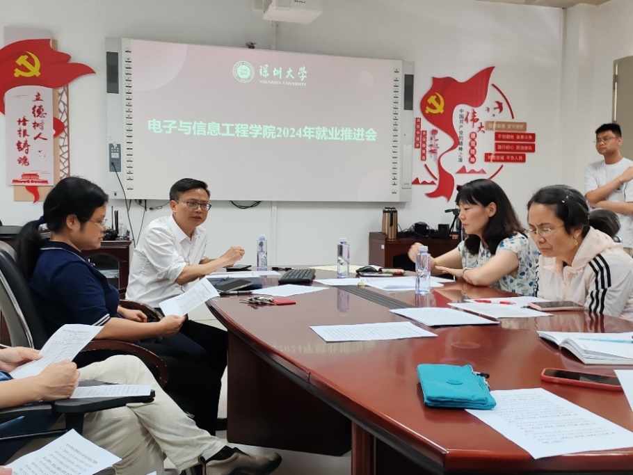 為進(jìn)一步落實就業(yè)工作,促進(jìn)2024屆畢業(yè)生高質(zhì)量充分就業(yè),深圳大學(xué)電子與信息工程學(xué)院于4月12日中午在滄海校區(qū)致信樓N723召開2024年就業(yè)推進(jìn)會。執(zhí)行院長黃磊、黨委書記周浩江、各系主任、班導(dǎo)師、研究生導(dǎo)師代表、畢業(yè)班輔導(dǎo)員及就業(yè)聯(lián)絡(luò)專員參加了會議,會議由學(xué)院黨委副書記楊丹主持。