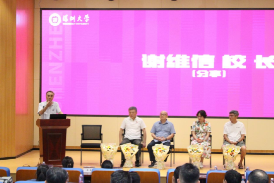 隨后,老師們次第登臺,在笑語中重溫青蔥歲月。謝維信老校長率先發(fā)言,從1997年信息工程學(xué)院初創(chuàng)的艱辛,講到如今學(xué)科體系的完善,尤其提及01級作為通信工程專業(yè)首批學(xué)生的特殊意義。他笑談深大圖書館南北相望的布局,稱其間小徑如“智慧金鑰匙”,指引學(xué)子探索求知;更闡釋了學(xué)院與深圳同頻共振的發(fā)展愿景,最后以“愿君前程似錦,與年輕一代并肩前行”的寄語收尾,溫情滿溢。