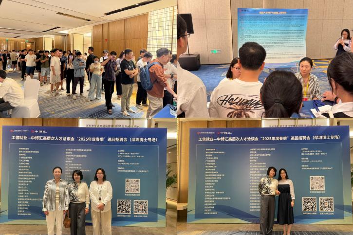 為深入貫徹落實(shí)黨的二十大精神,積極落實(shí)高校博士生就業(yè)優(yōu)先策略,助力粵港澳大灣區(qū)高水平人才高地建設(shè)與電子信息產(chǎn)業(yè)創(chuàng)新驅(qū)動(dòng)發(fā)展。2025年5月14日,深圳大學(xué)電子與信息工程學(xué)院一行參加了由工業(yè)和信息化部人才交流中心主辦的深圳博士專場(chǎng)招聘會(huì)。