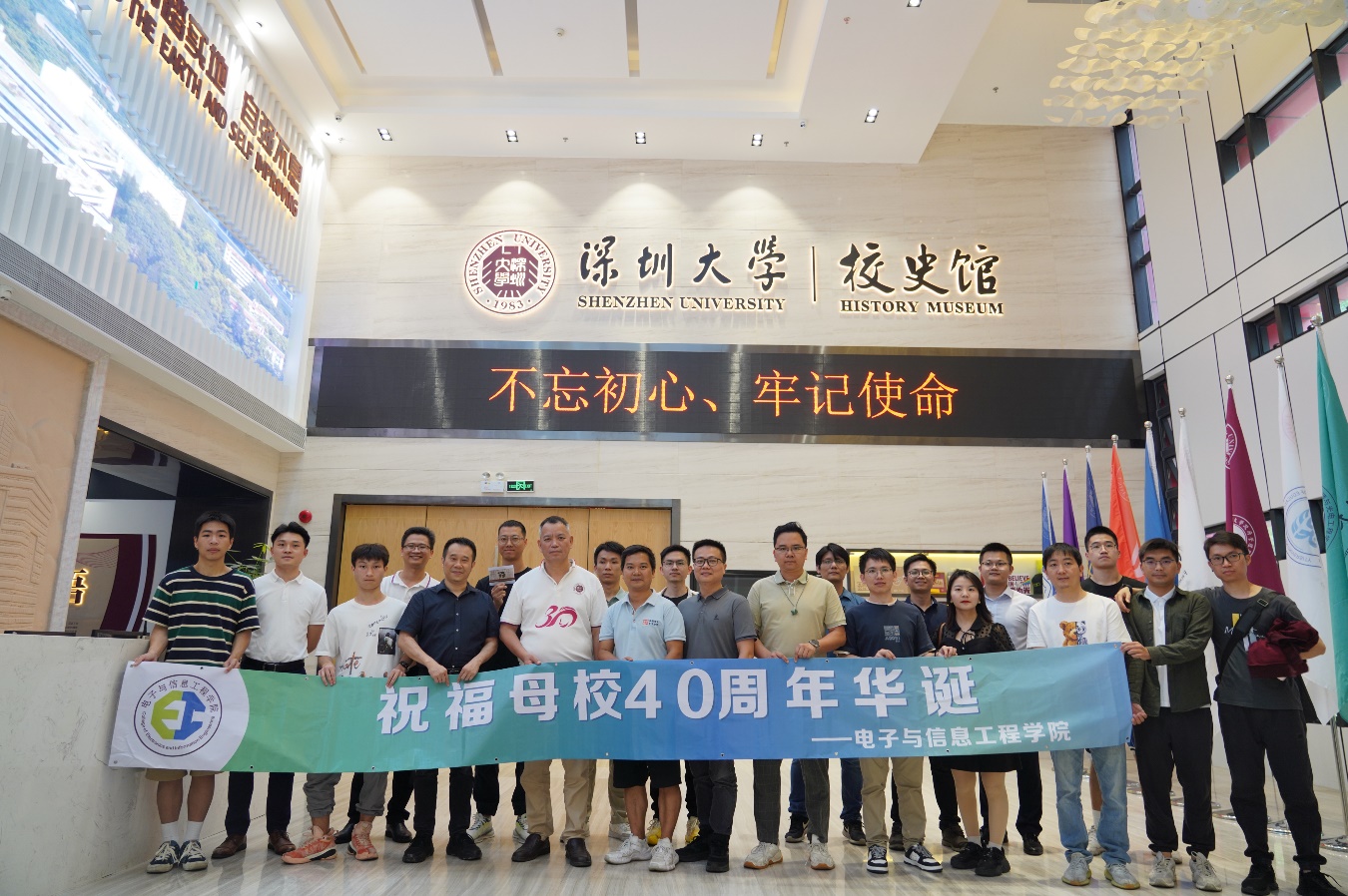 游覽完校園后,一行人回到放飛夢(mèng)想的起點(diǎn),電子與信息工程學(xué)院的大本營(yíng)——致信樓,留下了大合影。學(xué)院歡迎校友們返校,期待更多校友常回家看看!