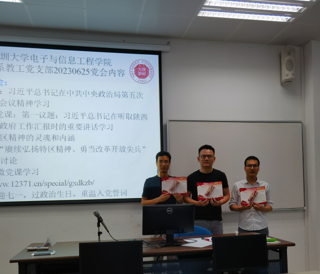會(huì)議第二項(xiàng)內(nèi)容為專題學(xué)習(xí)討論“賡續(xù)弘揚(yáng)特區(qū)精神、勇當(dāng)改革開放尖兵”。為了對(duì)特區(qū)精神有深入的了解,在討論之前開展了支部書記“講黨課”活動(dòng)。杜戈果同志介紹了特區(qū)精神的靈魂和內(nèi)涵。她在黨課中講到:2000年11月,在慶祝深圳經(jīng)濟(jì)特區(qū)成立20周年之際,提出了特區(qū)“十大精神”。2010年5月,深圳市第五次黨代會(huì)報(bào)告將“特區(qū)精神”歸納為7個(gè)方面。特區(qū)精神內(nèi)涵豐富、博大精深,是一個(gè)多層次、多方面的比較完整的體系,其主要內(nèi)涵是:敢闖敢試、敢為人先,開放包容、海納百川,追求卓越、崇尚成功、寬容失敗、注重創(chuàng)新,埋頭苦干、務(wù)實(shí)高效、崇尚法治。習(xí)近平總書記在深圳經(jīng)濟(jì)特區(qū)建立40周年慶祝大會(huì)上強(qiáng)調(diào),“要繼續(xù)發(fā)揚(yáng)敢闖敢試、敢為人先、埋頭苦干的特區(qū)精神,激勵(lì)干部群眾勇當(dāng)新時(shí)代的‘拓荒牛’”,“在新起點(diǎn)上,經(jīng)濟(jì)特區(qū)廣大干部群眾要堅(jiān)定不移貫徹落實(shí)黨中央決策部署,永葆‘闖’的精神、‘創(chuàng)’的勁頭、‘干’的作風(fēng),努力續(xù)寫更多‘春天的故事’”。習(xí)近平總書記的重要講話催人奮進(jìn),道出了特區(qū)精神的真諦。黨員老師們紛紛表示,我們作為深圳的一份子,要繼承和發(fā)揚(yáng)特區(qū)精神,在教學(xué)和科研工作中,追求卓越、注重創(chuàng)新、埋頭苦干、務(wù)實(shí)高效。