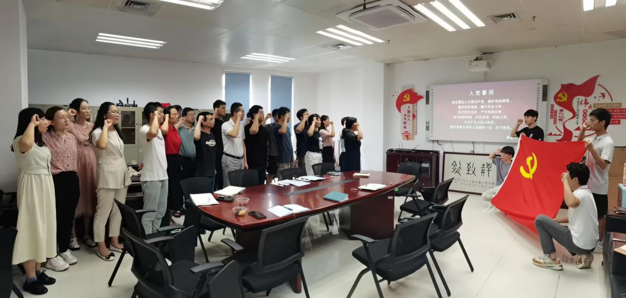 隨后,大家重溫入黨誓詞,堅定入黨初心。面對莊嚴的黨旗,全體黨員緊握右拳,集體宣讀入黨誓詞,向黨旗莊嚴宣誓,永葆入黨初心。宣誓儀式由周浩江同志領誓。