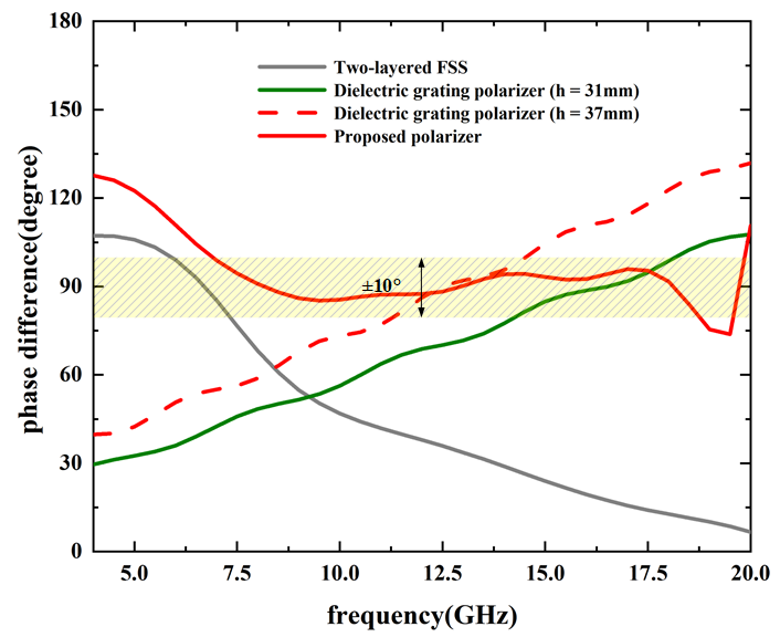 所提出的極化表面和傳統(tǒng)表面的相位差隨頻率變化曲線
