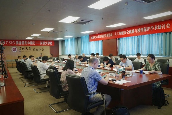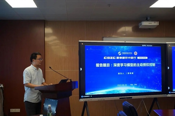 2023 年6月21日,CSIG圖像圖形中國行來到深圳大學(xué),本次研討會旨在定位于人工智能安全威脅與知識產(chǎn)權(quán)保護等前沿技術(shù),展示該領(lǐng)域最新的研究成果,并討論研究中面臨的難題與挑戰(zhàn)。活動主辦單位包括中國圖象圖形學(xué)學(xué)會(CSIG)、廣東省圖象圖形學(xué)會,承擔(dān)單位包括CSIG 數(shù)字媒體取證與安全專委會、深圳大學(xué)電子與信息工程學(xué)院(廣東省智能信息處理重點實驗室)、中山大學(xué)網(wǎng)絡(luò)空間安全學(xué)院。本次會議得到了廣泛關(guān)注,吸引了來自香港城市大學(xué)、重慶郵電大學(xué)、海南大學(xué)、灣區(qū)大學(xué)、中山大學(xué)、深圳大學(xué)等高校師生前來參會。 會議開幕式由深圳大學(xué)李斌教授主持,深圳大學(xué)電子與信息工程學(xué)院執(zhí)行院長黃磊特聘教授致開幕詞。李斌教授、陳昌盛副教授、楊文元助理教授分別為來訪專家主持學(xué)術(shù)報告。