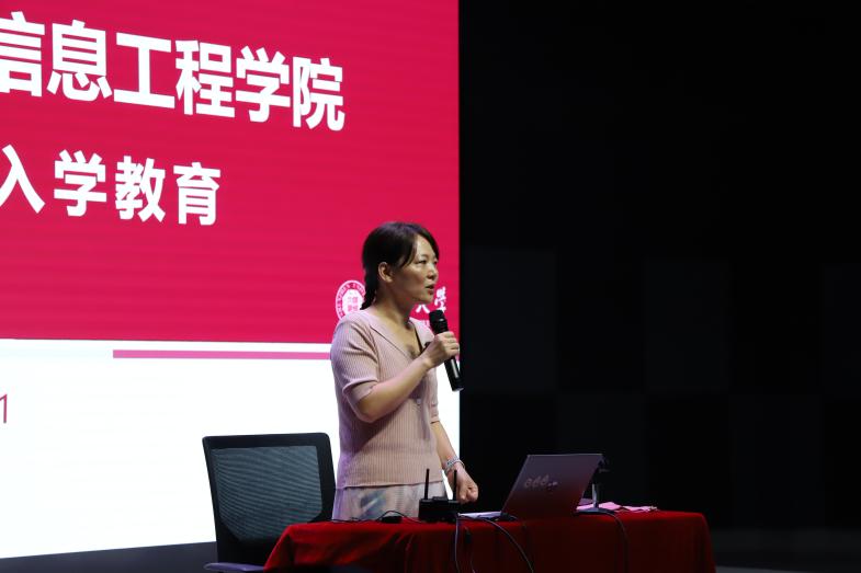 開場,楊丹老師代表學院領導和全體老師熱烈歡迎電信“萌新”的到來,“大學之道,在明明德,在親民,在止于至善”,楊老師點明 “大學入學教育是人才培養(yǎng)工作的重要環(huán)節(jié),它對于幫助新生適應大學階段的學習、科研、生活,引導大學生踔厲奮發(fā),成長成才具有重要意義”,而后介紹深圳大學歷程,寄語新生:秉持“自立,自律,自強”校訓,具備扎實的學識素養(yǎng),成長為有大愛的公民。