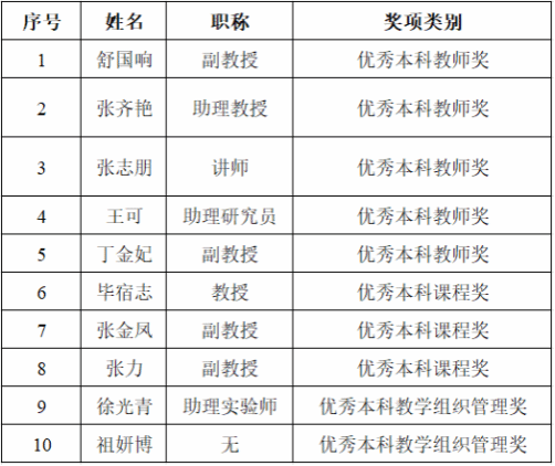 在深圳大學2023-2024學年度本科教學單項獎評選工作中,我院舒國響等5位教師榮獲優(yōu)秀本科教師獎,畢宿志等3位教師榮獲優(yōu)秀本科課程獎,徐光青等2位教師榮獲優(yōu)秀本科教學組織管理獎。