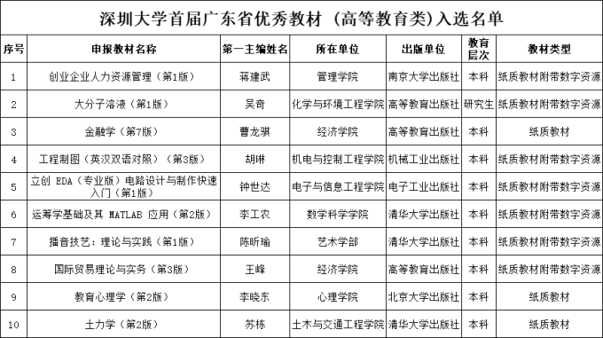 經(jīng)教材負責人申報、培養(yǎng)單位初審、研究生院組織專家評審推薦等環(huán)節(jié),我院共有2本教材獲深圳大學2025年研究生優(yōu)秀教材建設項目資助。