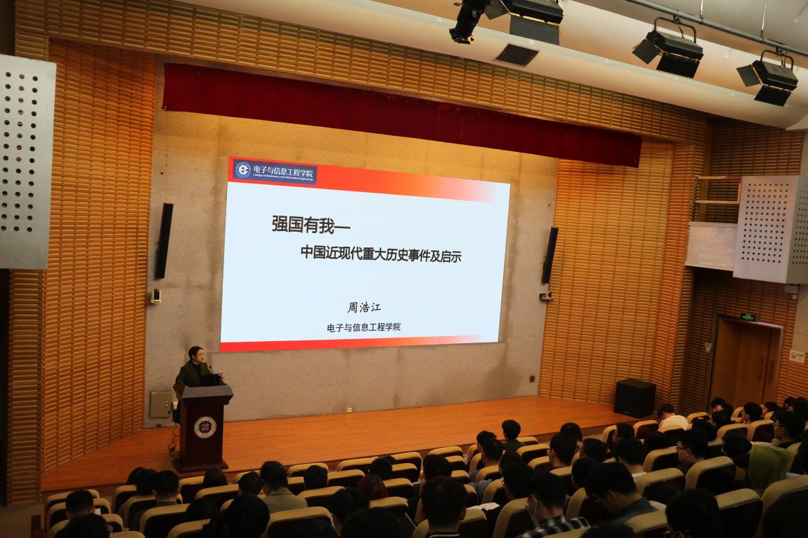 黨委書(shū)記周浩江的黨課以“強(qiáng)國(guó)有我——中國(guó)近現(xiàn)代重大歷史事件及啟示”為主題,她從鴉片戰(zhàn)爭(zhēng)前的中國(guó)與世界、鴉片戰(zhàn)爭(zhēng)后中國(guó)社會(huì)主要矛盾及歷史任務(wù)、鴉片戰(zhàn)爭(zhēng)到五四運(yùn)動(dòng)期間中國(guó)社會(huì)各階級(jí)對(duì)國(guó)家出路的探索和鴉片戰(zhàn)爭(zhēng)到五四運(yùn)動(dòng)期間中國(guó)社會(huì)各階級(jí)探索國(guó)家出路的歷史教訓(xùn)與現(xiàn)實(shí)啟示四個(gè)方面帶領(lǐng)大家重溫了中國(guó)人民為實(shí)現(xiàn)中華民族獨(dú)立、解放和偉大復(fù)興而不懈奮斗的歷史進(jìn)程。近代中國(guó)社會(huì)各階級(jí)探索國(guó)家出路的現(xiàn)實(shí)告訴我們,中國(guó)共產(chǎn)黨的領(lǐng)導(dǎo)是歷史和人民的選擇,中國(guó)產(chǎn)生了共產(chǎn)黨,這是開(kāi)天辟地的大事變,揭開(kāi)了中國(guó)歷史的新篇章,揭開(kāi)了中華民族偉大復(fù)興進(jìn)程的新篇章。中國(guó)共產(chǎn)黨一經(jīng)誕生,就把為中國(guó)人民謀幸福、為中華民族謀復(fù)興確立為自己的初心使命。我們黨團(tuán)結(jié)帶領(lǐng)人民經(jīng)過(guò)28年浴血奮斗,徹底結(jié)束了舊中國(guó)半殖民地半封建社會(huì)的歷史,徹底結(jié)束了極少數(shù)剝削者統(tǒng)治廣大勞動(dòng)人民的歷史,徹底結(jié)束了舊中國(guó)一盤(pán)散沙的局面,徹底廢除了列強(qiáng)強(qiáng)加給中國(guó)的不平等條約和帝國(guó)主義在中國(guó)的一切特權(quán),為實(shí)現(xiàn)中華民族偉大復(fù)興創(chuàng)造了根本社會(huì)條件。習(xí)近平總書(shū)記強(qiáng)調(diào):“中國(guó)特色社會(huì)主義是黨和人民歷經(jīng)千辛萬(wàn)苦、付出巨大代價(jià)取得的根本成就,是實(shí)現(xiàn)中華民族偉大復(fù)興的正確道路。”中國(guó)特色社會(huì)主義承載著幾代中國(guó)共產(chǎn)黨人的理想和探索,寄托著無(wú)數(shù)仁人志士的夙愿和期盼,凝聚著億萬(wàn)人民的奮斗和犧牲。 習(xí)近平總書(shū)記指出:“近代史上 ,我國(guó)落后挨打的根子之一就是科技落后。”所以,“創(chuàng)新不是別人能賜予的 ,特別是在關(guān)鍵技術(shù)、核心技術(shù)上 ,只能靠中國(guó)人自己的努力 ,否則你只能跟著別人走。”黨的二十大報(bào)告指出,“教育、科技、人才是全面建設(shè)社會(huì)主義現(xiàn)代化國(guó)家的基礎(chǔ)性、戰(zhàn)略性支撐。必須堅(jiān)持科技是第一生產(chǎn)力、人才是第一資源、創(chuàng)新是第一動(dòng)力,深入實(shí)施科教興國(guó)戰(zhàn)略、人才強(qiáng)國(guó)戰(zhàn)略、創(chuàng)新驅(qū)動(dòng)發(fā)展戰(zhàn)略,開(kāi)辟發(fā)展新領(lǐng)域新賽道,不斷塑造發(fā)展新動(dòng)能新優(yōu)勢(shì)。”周浩江指出,作為電子與信息工程學(xué)院的學(xué)生,要敢于抓住以人工智能、云計(jì)算、大數(shù)據(jù)等新興技術(shù)為引領(lǐng)的新一輪科技產(chǎn)業(yè)變革的新機(jī)遇。當(dāng)代青年面臨著近代以來(lái)中華民族發(fā)展的最好時(shí)代,也是實(shí)現(xiàn)中華民族偉大復(fù)興的關(guān)鍵時(shí)代,這是當(dāng)代青年人難得的歷史際遇,每個(gè)青年都應(yīng)當(dāng)珍惜這個(gè)偉大的時(shí)代,堅(jiān)定理想信念,敢擔(dān)當(dāng)、敢作為、敢創(chuàng)新,主動(dòng)融入粵港澳大灣區(qū)規(guī)劃、“一帶一路”、人類(lèi)命運(yùn)共同體等國(guó)家發(fā)展戰(zhàn)略和偉大事業(yè),為決勝全面建成小康社會(huì)、奪取新時(shí)代中國(guó)特色社會(huì)主義偉大勝利、實(shí)現(xiàn)中華民族偉大復(fù)興的中國(guó)夢(mèng)貢獻(xiàn)自己的力量。