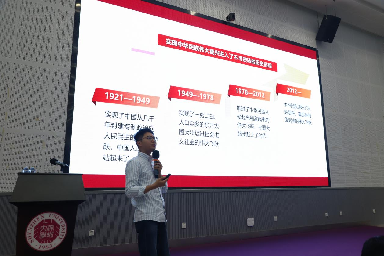 任恒老師首先從民族歷史進程和中國共產(chǎn)黨百年奮斗史進行了深入講解,強調(diào)了中國共產(chǎn)黨在百年奮斗輝煌歷程中堅定歷史自信以及歷史意義。緊接著任恒老師拋出“中國共產(chǎn)黨為什么能?”的問題,結(jié)合十月革命、黨的一大等重大歷史事件,深入淺出、層層分析,給出屬于中國共產(chǎn)黨人的答卷,初心使命就是中國共產(chǎn)黨人不竭的力量源泉。