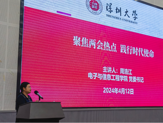 兩會(huì)春風(fēng)拂面來,青春繁華遍地開。為引導(dǎo)廣大青年學(xué)生深入學(xué)習(xí)貫徹習(xí)近平總書記在全國(guó)兩會(huì)期間的重要講話精神和全國(guó)兩會(huì)精神,2024年4月12日,電子與信息工程學(xué)院黨委書周浩江在致騰樓一樓報(bào)告廳開講2024年春季學(xué)期書記“思政第一課”。我院學(xué)生黨員、發(fā)展對(duì)象、入黨積極分子、青馬“筑夢(mèng)營(yíng)”、學(xué)生干部等共計(jì)350人到場(chǎng)聆聽。學(xué)院黨委書記周浩江作《聚焦兩會(huì)熱點(diǎn),踐行時(shí)代使命》的主題授課。