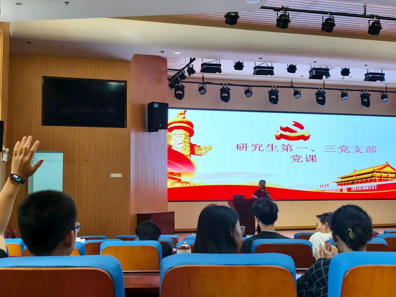 隨后,周浩江表示各位黨員應(yīng)加強(qiáng)學(xué)術(shù)研究,她指出,創(chuàng)新正在成為引領(lǐng)全球發(fā)展的牽動(dòng)力量,在科技創(chuàng)新的征途中,黨員應(yīng)當(dāng)發(fā)揮“排頭兵”作用,在思想上、行動(dòng)上與黨保持一致,堅(jiān)持誠(chéng)信,杜絕學(xué)術(shù)不端行為,嚴(yán)守黨的紀(jì)律紅線。周書(shū)記特別強(qiáng)調(diào)了研究生生涯規(guī)劃的重要性,作為新時(shí)代研究生應(yīng)積極與導(dǎo)師溝通,在未來(lái)科研工作中設(shè)定目標(biāo),勤學(xué)好問(wèn)、潛心鉆研,“天才出于勤奮,務(wù)實(shí)才能成功”。