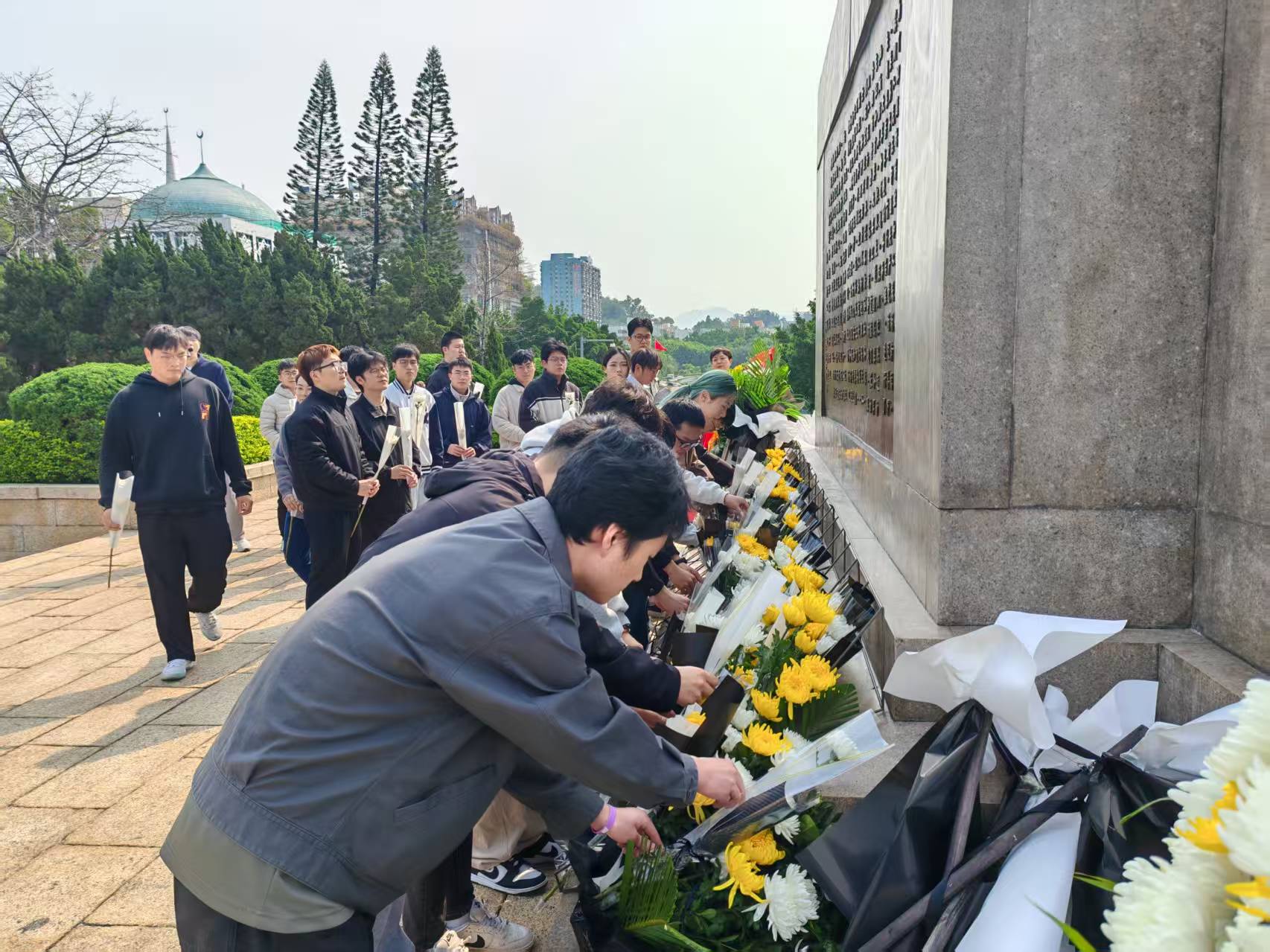 支部黨員同志在紀念碑下敬獻白菊