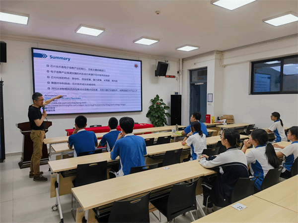 5月29日,一場別開生面的講座在人大附中深圳中學隆重舉行。本次講座邀請了電子與信息工程學院副院長黎冰副教授為大家?guī)砹酥黝}為《美國對華科技戰(zhàn)——芯片戰(zhàn)爭》的精彩演講。