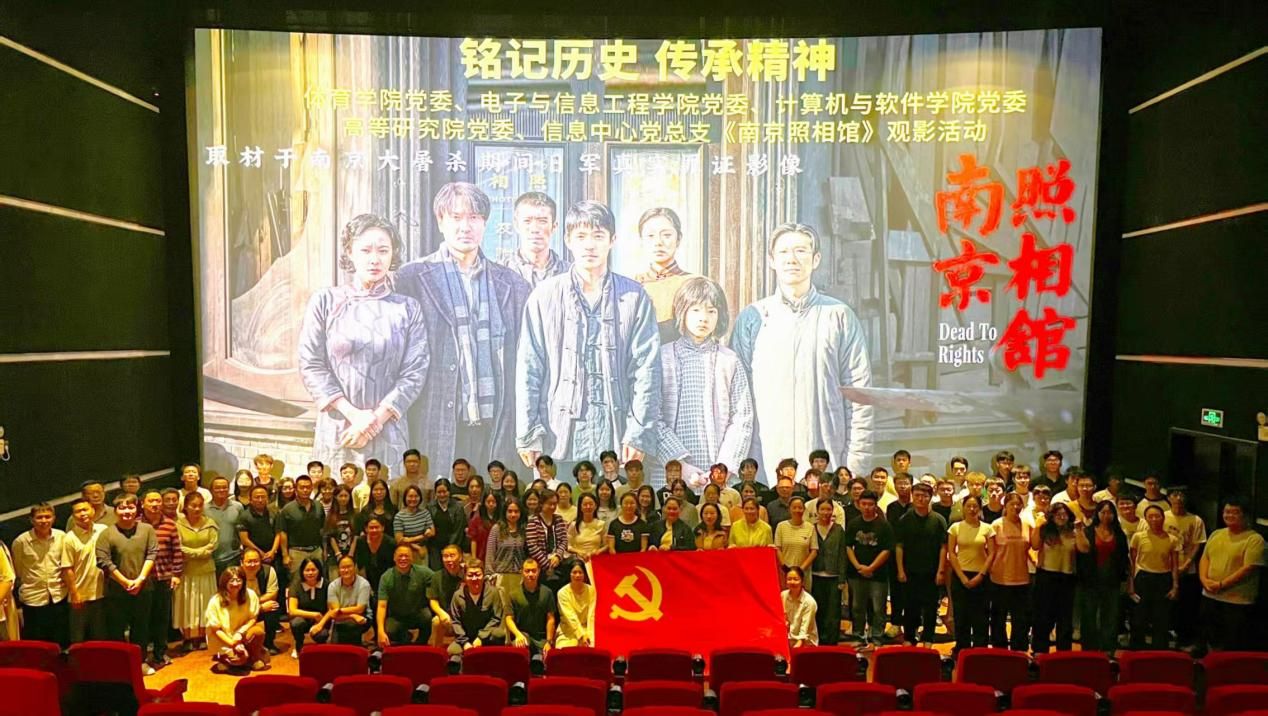 為紀念中國人民抗日戰(zhàn)爭暨世界反法西斯戰(zhàn)爭勝利80周年,弘揚愛國主義精神,提升思想政治教育的時代性與感召力,10月30日,體育學院黨委、電子與信息工程學院黨委、計算機與軟件學院黨委、高等研究院黨委和信息中心黨總支五個單位聯(lián)合舉辦《南京照相館》觀影活動,共計107名師生參加。