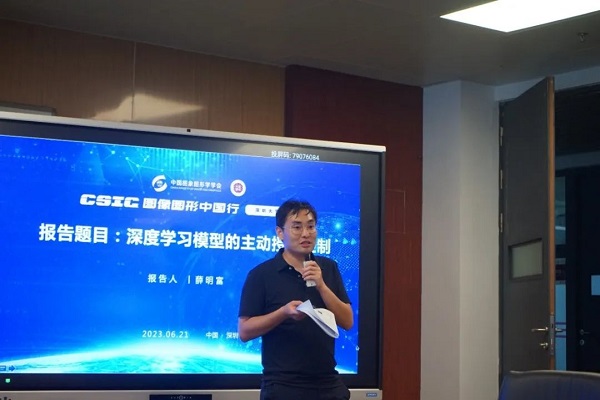 2023 年6月21日,CSIG圖像圖形中國行來到深圳大學(xué),本次研討會旨在定位于人工智能安全威脅與知識產(chǎn)權(quán)保護(hù)等前沿技術(shù),展示該領(lǐng)域最新的研究成果,并討論研究中面臨的難題與挑戰(zhàn)。活動主辦單位包括中國圖象圖形學(xué)學(xué)會(CSIG)、廣東省圖象圖形學(xué)會,承擔(dān)單位包括CSIG 數(shù)字媒體取證與安全專委會、深圳大學(xué)電子與信息工程學(xué)院(廣東省智能信息處理重點(diǎn)實(shí)驗(yàn)室)、中山大學(xué)網(wǎng)絡(luò)空間安全學(xué)院。本次會議得到了廣泛關(guān)注,吸引了來自香港城市大學(xué)、重慶郵電大學(xué)、海南大學(xué)、灣區(qū)大學(xué)、中山大學(xué)、深圳大學(xué)等高校師生前來參會。 會議開幕式由深圳大學(xué)李斌教授主持,深圳大學(xué)電子與信息工程學(xué)院執(zhí)行院長黃磊特聘教授致開幕詞。李斌教授、陳昌盛副教授、楊文元助理教授分別為來訪專家主持學(xué)術(shù)報(bào)告。