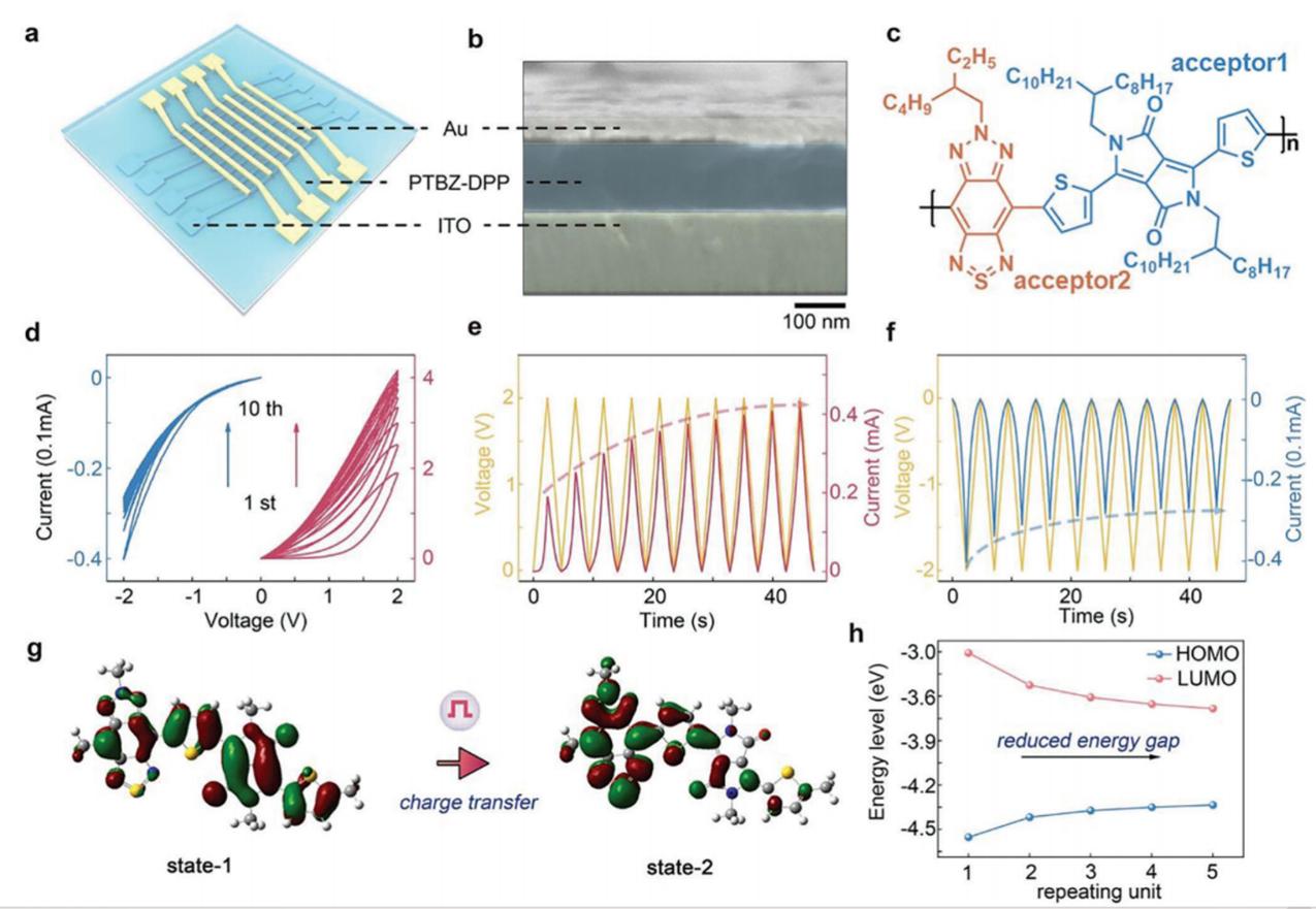 圖1. PTBZ-DPP憶阻器的設(shè)計思路和電學(xué)表征。