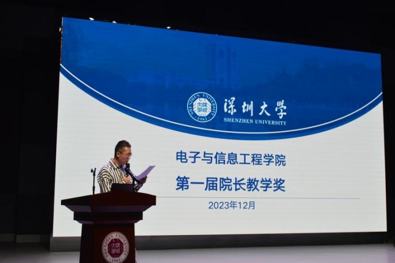 2023年12月29日,深圳大學(xué)電子與信息工程學(xué)院在滄海校區(qū)致理樓L3二樓演播廳舉辦了第一屆院長教學(xué)獎現(xiàn)場評審會暨頒獎儀式。電子與信息工程學(xué)院院長、中國工程院院士丁文華老師,電子與信息工程學(xué)院黨委書記周浩江老師,教學(xué)督導(dǎo)團(tuán)團(tuán)長孫忠梅老師,教務(wù)處副處長曾明老師,全體參評教師、教學(xué)指導(dǎo)分委員會委員及近百位學(xué)生代表出席。會議由學(xué)院教學(xué)副院長黎冰老師主持。