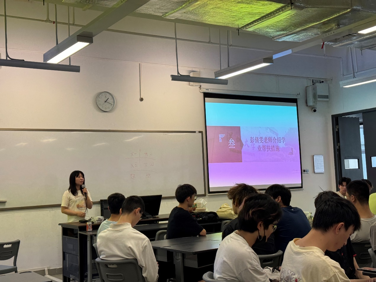 輔導(dǎo)員彭倩雯老師分享了學(xué)業(yè)幫扶措施,讓同學(xué)們更有信心克服學(xué)業(yè)困難,實(shí)現(xiàn)學(xué)業(yè)目標(biāo)。彭老師也請同學(xué)們現(xiàn)場掃碼填寫問卷,表示會根據(jù)同學(xué)們的需求舉辦各類活動:如,開展職業(yè)規(guī)劃講座、職業(yè)規(guī)劃師咨詢、學(xué)習(xí)經(jīng)驗(yàn)分享、提供個(gè)性輔導(dǎo)、組織學(xué)習(xí)互助小組等等。