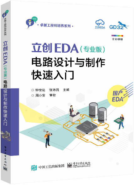 《立創(chuàng)EDA(專業(yè)版)電路設(shè)計(jì)與制作快速入門》(鐘世達(dá)、張沛昌主編;ISBN:978-7-121-42696-4),2022年2月由電子工業(yè)出版社出版。據(jù)電子工業(yè)出版社統(tǒng)計(jì),截至到今年7月,該教材目前共發(fā)行20200冊(cè)。據(jù)不完全統(tǒng)計(jì),使用該教材的有深圳大學(xué)、華中科技大學(xué)、蘇州大學(xué)、華東師范大學(xué)、南京工業(yè)大學(xué)、青島科技大學(xué)、青島理工大學(xué)、桂林理工大學(xué)、石河子大學(xué)、塔里木大學(xué)、廣東海洋大學(xué)、深圳職業(yè)技術(shù)大學(xué)、蘇州市職業(yè)大學(xué)、九江學(xué)院等超過100所學(xué)校。該教材自出版以來,在全國(guó)得到了廣泛的應(yīng)用,獲得廣大師生的好評(píng),該教材配套的線上教學(xué)視頻播放量已突破58萬次。除了高校外,該教材也受到相關(guān)行業(yè)工程技術(shù)人員歡迎,被部分公司用于培訓(xùn)電路設(shè)計(jì)與制作相關(guān)崗位人員。目前該教材已被嘉立創(chuàng)公司推薦為官方EDA軟件學(xué)習(xí)教材。