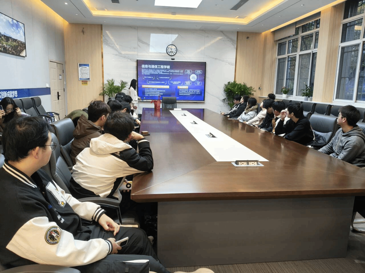 分享會(huì)開篇,宣講組以粵港澳大灣區(qū)“國(guó)際科技創(chuàng)新中心”戰(zhàn)略布局及發(fā)展態(tài)勢(shì)為切入點(diǎn),詳解深圳作為灣區(qū)核心城市的產(chǎn)業(yè)集聚優(yōu)勢(shì) —— 華為、大疆、比亞迪等龍頭企業(yè)帶來(lái)的科研轉(zhuǎn)化機(jī)遇。隨后系統(tǒng)介紹了深圳大學(xué)及電子與信息工程學(xué)院的科研實(shí)力、區(qū)位優(yōu)勢(shì)、培養(yǎng)特色、國(guó)家級(jí)和省級(jí)科研平臺(tái)、招生政策、獎(jiǎng)助體系及就業(yè)前景,特別是結(jié)合大灣區(qū)電子信息產(chǎn)業(yè)集群化的優(yōu)勢(shì),闡釋了在深圳大學(xué)深造的發(fā)展空間。分享會(huì)引起了學(xué)生的濃厚興趣,互動(dòng)現(xiàn)場(chǎng)氣氛熱烈。