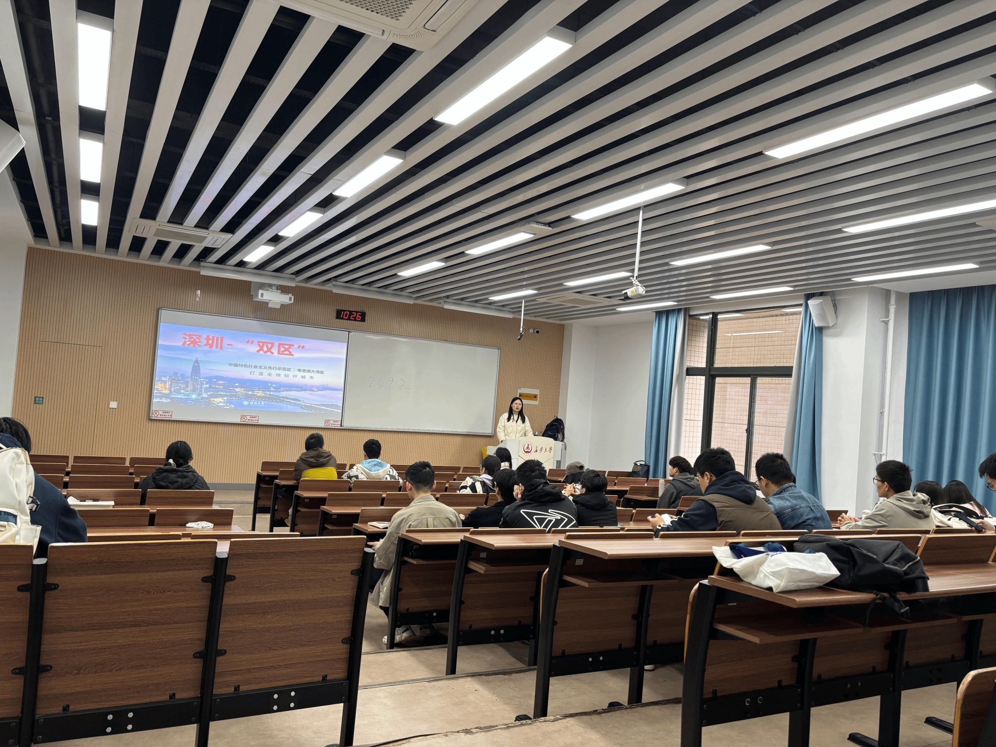 宣講伊始,宣講組以 “深大與深圳共發(fā)展” 為核心,先介紹深圳作為先行示范區(qū)的產(chǎn)業(yè)活力和極強(qiáng)的城市吸引力,再結(jié)合學(xué)校的歷史發(fā)展簡史、科研數(shù)據(jù)向?qū)W生們展示深圳大學(xué)的快速發(fā)展,從優(yōu)越地理位置凸顯豐富的創(chuàng)新實(shí)踐基地資源,給予學(xué)子們廣闊的理論與實(shí)踐相結(jié)合的平臺。