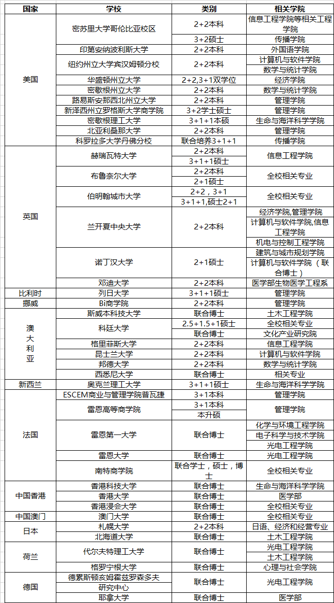 我校現(xiàn)行開展的雙學(xué)位和聯(lián)合培養(yǎng)項(xiàng)目有: