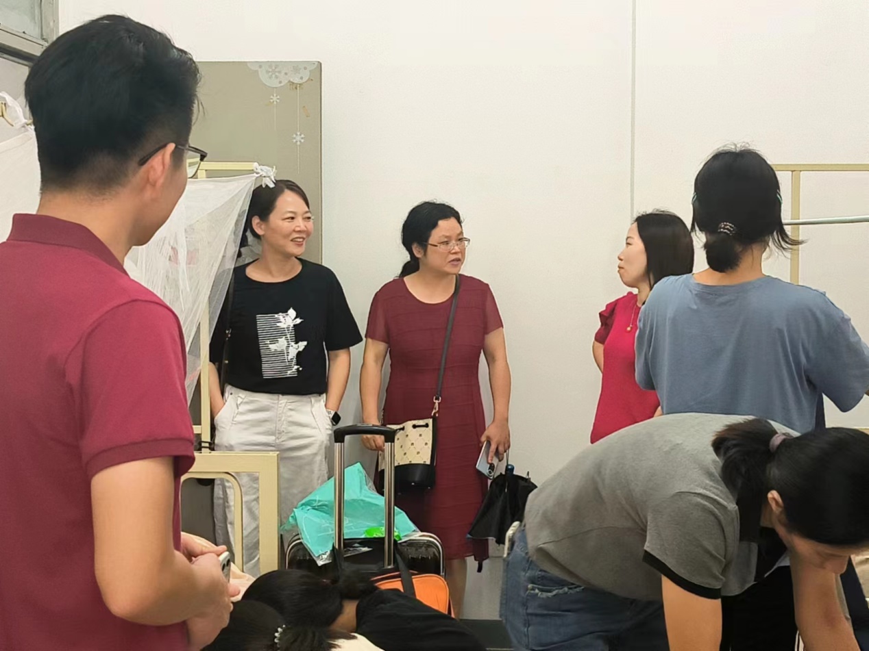 9日下午,學(xué)院黨委楊丹副書記、本科生輔導(dǎo)員王鑠瀚和龍菲老師等走訪了本科生新生宿舍,新生們精神面貌良好,宿舍內(nèi)和諧融洽,楊丹副書記親切向同學(xué)們表達(dá)了學(xué)院的關(guān)心和問候,逐一詢問他們在校后的適應(yīng)情況。楊書記的關(guān)懷細(xì)致入微,她詳細(xì)了解了同學(xué)們的生源和專業(yè)情況,以及對新學(xué)期的期望,并與他們深入交流討論了新學(xué)期的安排,為同學(xué)們詳細(xì)介紹學(xué)院情況,在交流中,她特別強(qiáng)調(diào)宿舍是大學(xué)四年學(xué)習(xí)生活中至關(guān)重要的場所。她叮囑同學(xué)們要團(tuán)結(jié)友愛、互幫互助,創(chuàng)造一個(gè)文明、舒適、充滿愛的宿舍環(huán)境。此外,輔導(dǎo)員老師們檢查了宿舍設(shè)施情況,并及時(shí)跟進(jìn)后續(xù)處理情況。