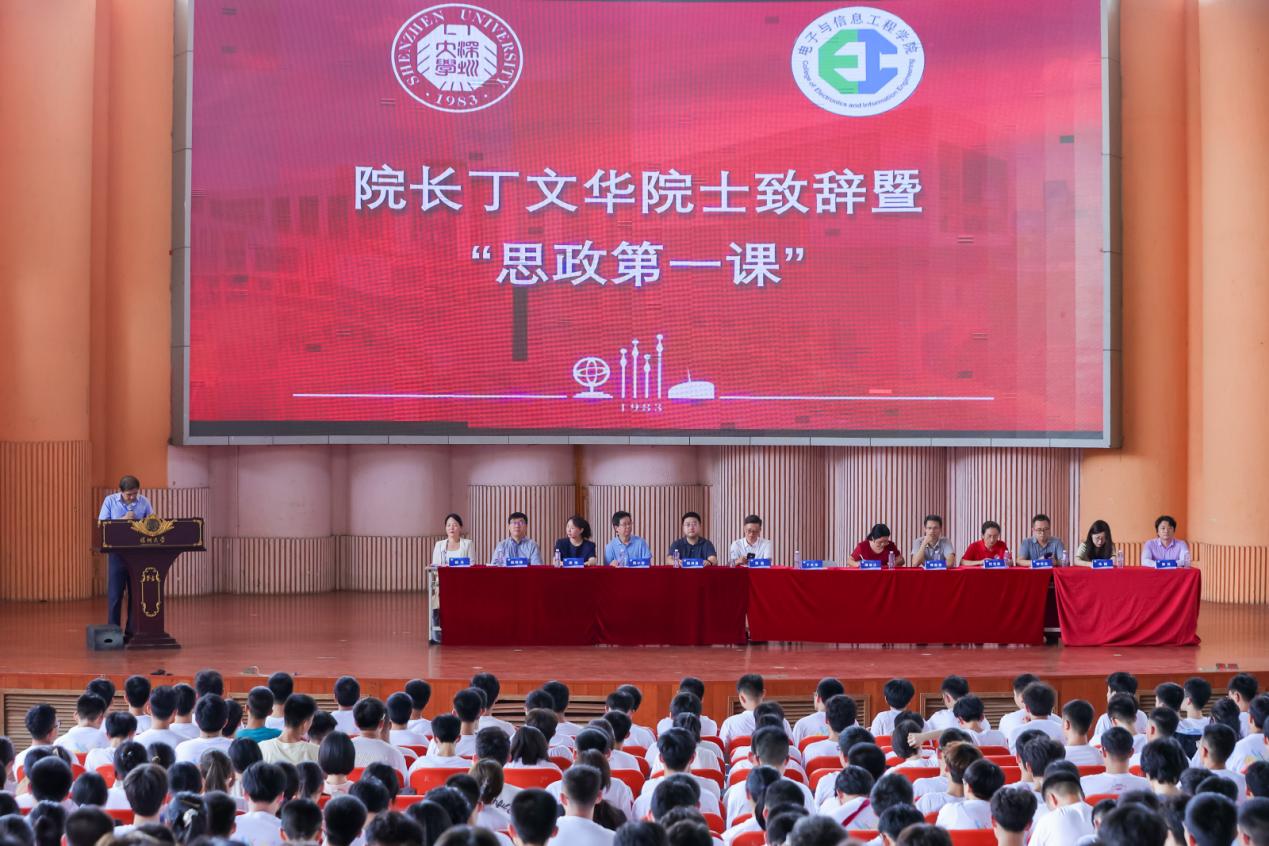 9月3日下午,電子與信息工程學院2024級新生開學典禮暨秋季學期“思政第一課”在深圳大學粵海校區(qū)演會中心隆重舉行,院長丁文華院士、黨委書記周浩江、執(zhí)行院長黃磊、副院長張沛昌、各系主任、教師代表、新生班主任代表、輔導員及2024級電子與信息工程學院一千余名新生齊聚一堂,參加開學典禮。本次開學典禮由學院黨委副書記楊丹主持。