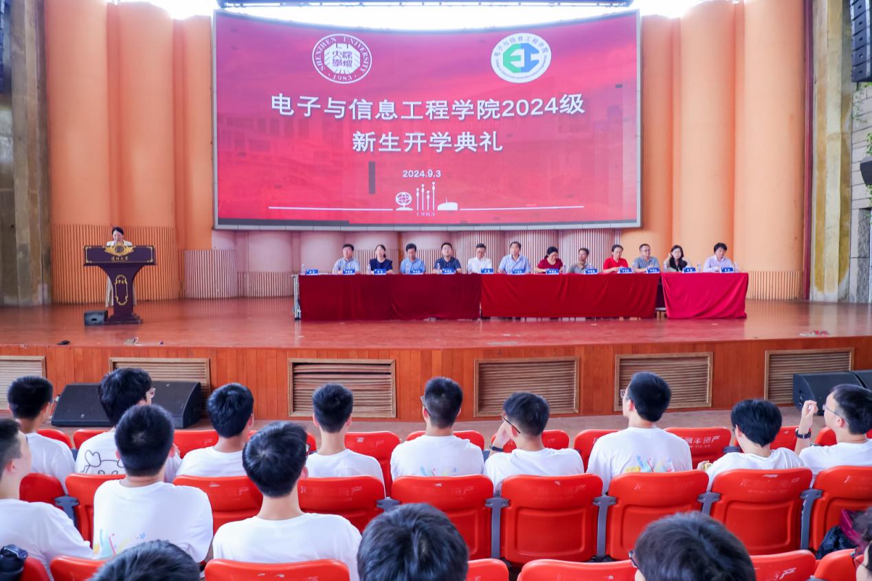 典禮伊始,全體起立奏唱國歌。在莊嚴的國歌聲中,電子與信息工程學院2024級本科生及研究生新生開學典禮拉開帷幕。