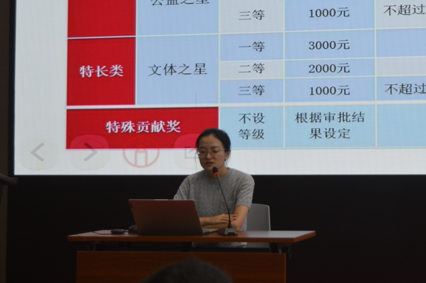 葉可慧老師為新生們介紹了本科生獎學(xué)金的評選標準,包括學(xué)習(xí)成績、綜合素質(zhì)、社會實踐、科研創(chuàng)新等多個方面,鼓勵同學(xué)們?nèi)姘l(fā)展,不僅要在學(xué)業(yè)上追求卓越,更要注重培養(yǎng)自己的綜合素質(zhì)和創(chuàng)新能力。鼓勵新生們積極參與各類競賽、科研和社會實踐活動,努力提升自己的綜合素質(zhì)和競爭力,爭取獲得這些寶貴的榮譽和資助。