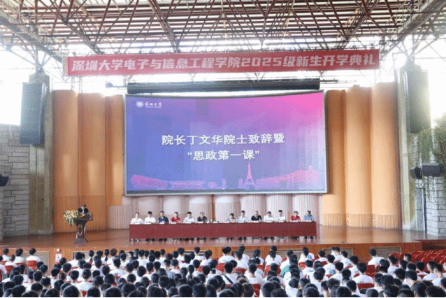 9月5日上午,電子與信息工程學(xué)院2025級(jí)新生開學(xué)典禮暨秋季學(xué)期“思政第一課”在深圳大學(xué)粵海校區(qū)演會(huì)中心隆重舉行,院長丁文華院士,黨委書記周浩江,執(zhí)行院長黃磊,副院長張勝利、李巖山、黎冰、張沛昌,各系主任鄭能恒、杜戈果、姜梅、鐘世達(dá)、教師代表宋超運(yùn),新生班主任代表張志朋、盧頔、林華偉、高帥、李偉祥、王蔚昊,新生輔導(dǎo)員及2025級(jí)全體新生齊聚一堂,參加開學(xué)典禮。本次典禮由學(xué)院黨委副書記楊丹主持。