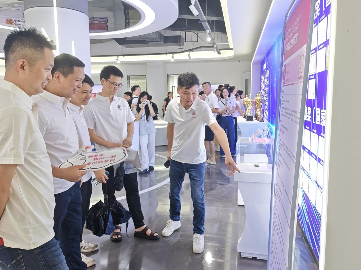 下午三點半,校友們踏入學(xué)院展廳106,在歷屆畢業(yè)生的合影前駐足流連,在學(xué)院近年斬獲的國家級、省級、市級榮譽墻前駐足凝視,更在5G/6G先進(jìn)天線技術(shù)、NanoSAR無人機系統(tǒng)等前沿科技成果展示區(qū)駐足探索。學(xué)院的宣傳短片與射頻異質(zhì)異構(gòu)集成國家重點實驗室的資料,讓校友們直觀感受到學(xué)院在學(xué)術(shù)與科研領(lǐng)域的蓬勃發(fā)展。