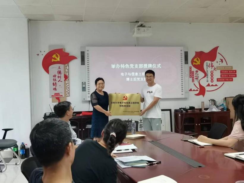 為加強學院基層黨支部建設,經(jīng)學院黨委會研究決定,授予博士后黨支部“特色黨支部”稱號。特色黨支部的建設是深化支部規(guī)范化建設,形成強有力的基層黨建工作的重要載體;是創(chuàng)新基層黨支部建設,加強黨建引領,發(fā)揮黨支部戰(zhàn)斗堡壘作用和黨員先鋒模范作用,推動黨建工作與學院建設深度融合的有效方式;是不斷提升黨支部工作引領力、創(chuàng)新力、感召力和凝聚力的有力抓手。周浩江同志為博士后黨支部授牌。